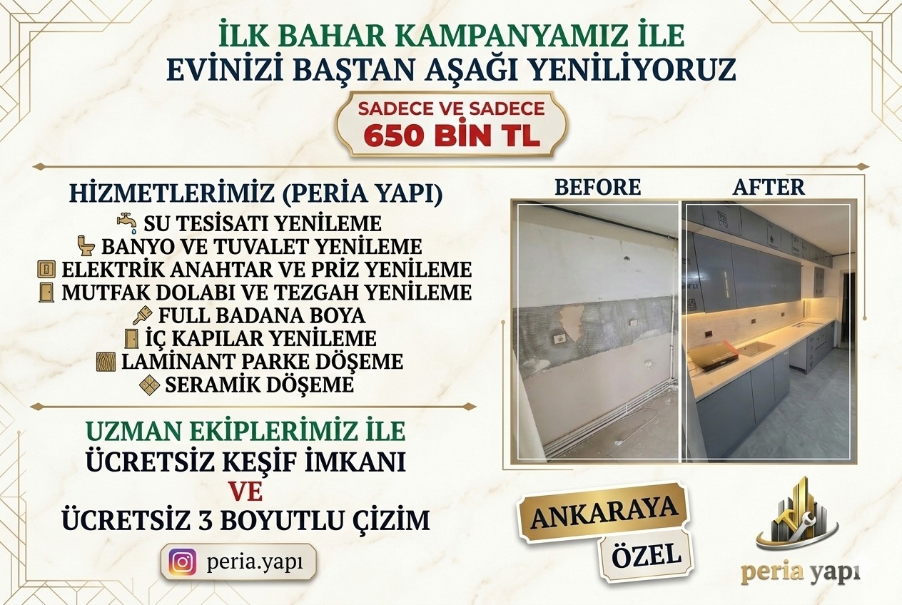 ÜCRETSİZ KEŞİF HİZMETİMİZLE BAŞLAYIP, ANAHTAR TESLİM OLARAK EVİNİZİ BAŞTAN TASARLIYORUZ